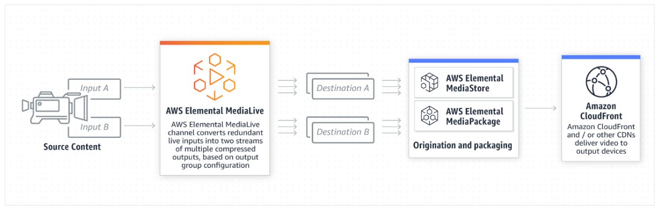 - 별도의 복잡한 구성 작업 없이 비용 효율적인 방법으로 동영상을 AWS Elemental MediaLive로 안전하고 안정적으로 전송하여 시청자에게 제공