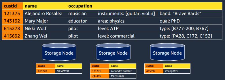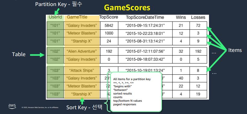 - 모든 데이터는 테이블에 저장, partition key가 필요