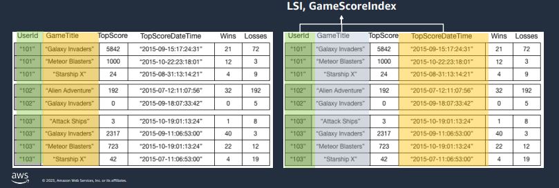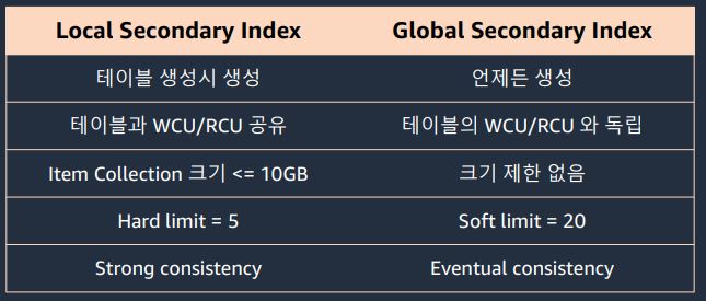 - 기본 테이블과는 다른 검색 조건을위한 Secondary Index
