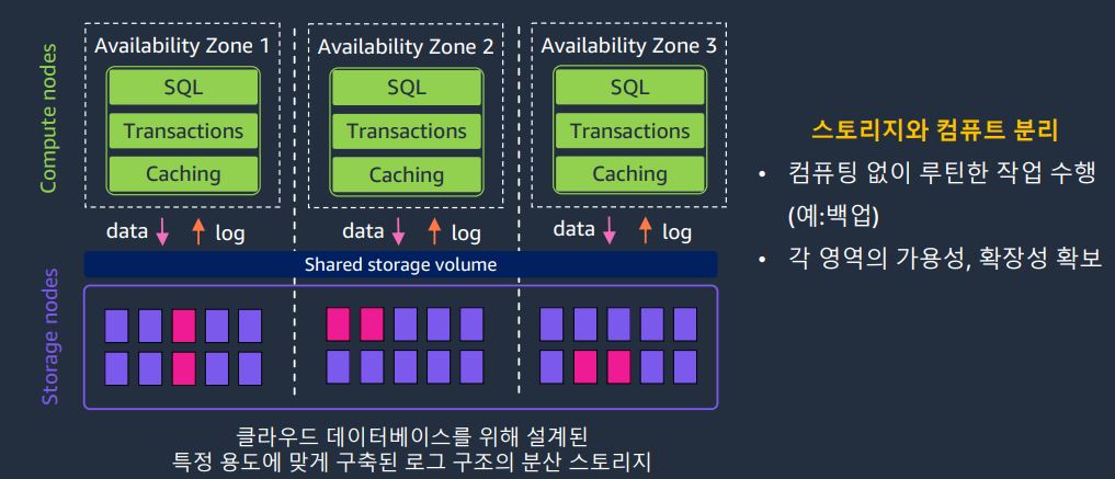 - 클라우드를 위해 설계된 MySQL, PostgreSQL 호환 관계형 데이터베이스